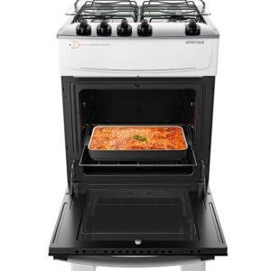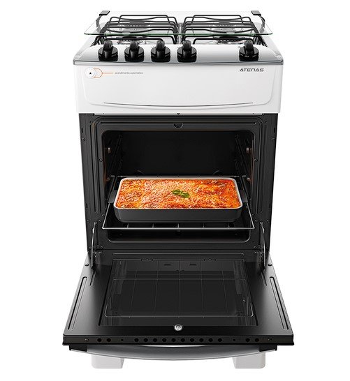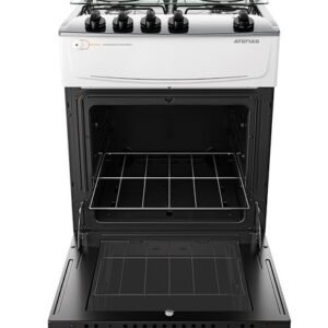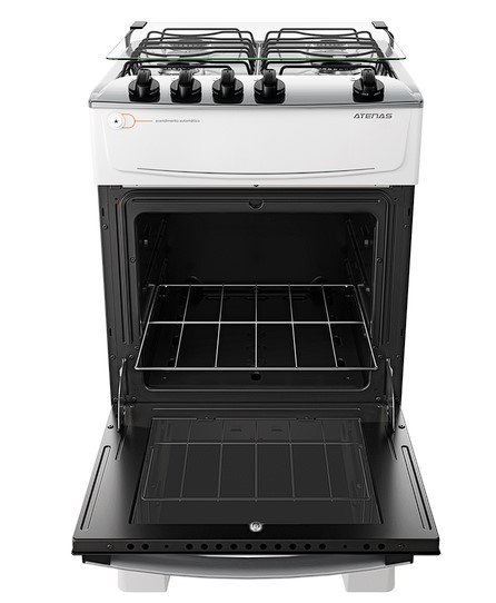 Fogão 4 bocas Atlas Atenas branco com mesa inox, bivolt. Possui acendimento automático com botões no topo da mesa, grades duplas em aço com base reforçada, puxador de alumínio escovado e forno com visor amplo e porta de vidro. Conta com isolamento térmico em lã de basalto, pés altos e acabamento Limpa Fácil para facilitar a limpeza. Ideal para cozinhas que buscam praticidade, economia de energia e desempenho no preparo de alimentos.