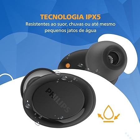PHILIPS Fone de ouvido sem fio TWS bluetooth com microfone e energia para 18 horas